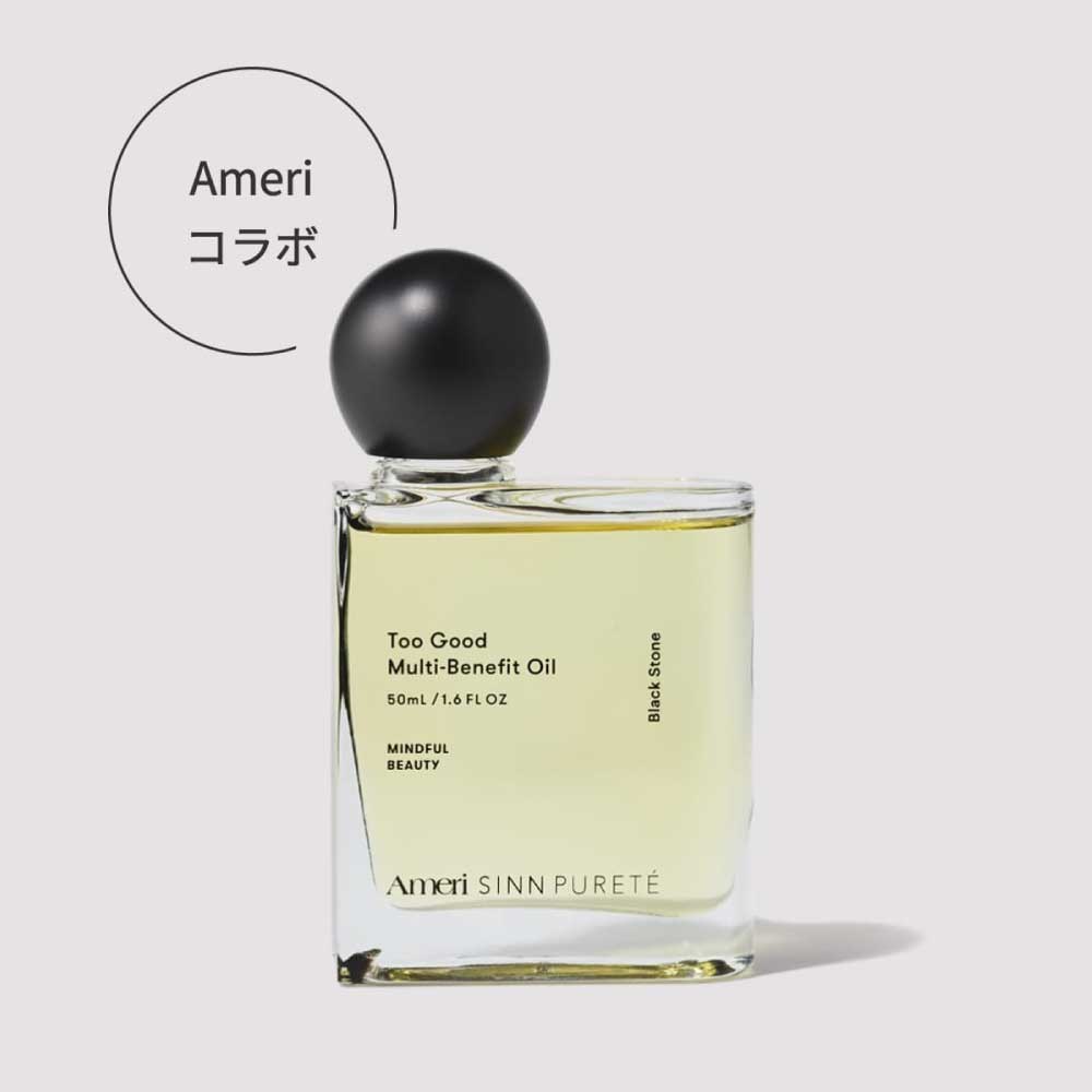 髪にも肌にもすっと馴染んで浸透し、内側からケアする美容オイルは、ヘアスタイリングや、タオルドライ後のトリートメント、ボディの艶や保湿にも、全てのシーンにToo Goodにフィットするオイルです。心と脳に働きかけるマインドフルな香りが、Ameri VINTAGEとのコラボの香りで登場。